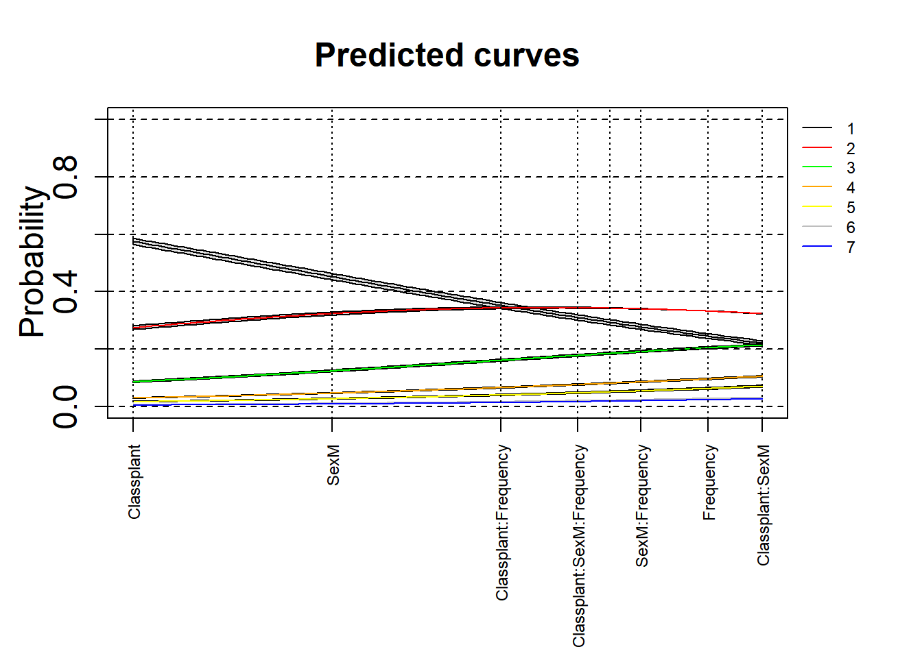 plot(0, 0, xlim = xlim, ylim = ylim, type = "n", ylab = expression(Probability), xlab = "", xaxt = "n", main = "Predicted curves", cex = 2, cex.lab = 1.5, cex.main = 1.5, cex.axis = 1.5)