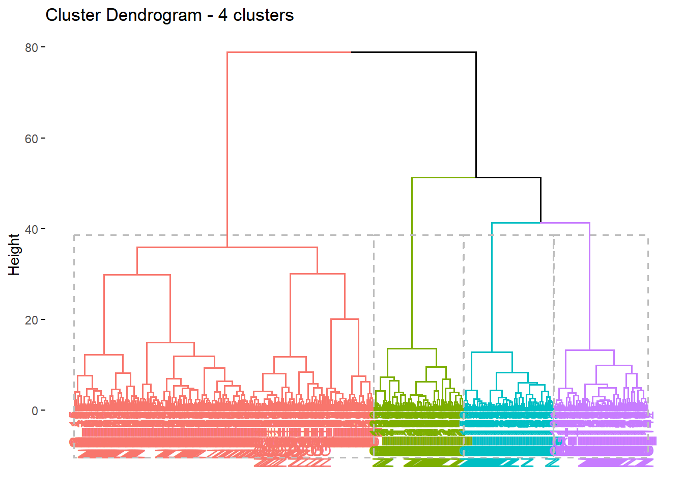 fviz_dend(km.resdat1_4, show_labels = TRUE, rect = TRUE, repel = TRUE, main = "Cluster Dendrogram - 4 clusters")