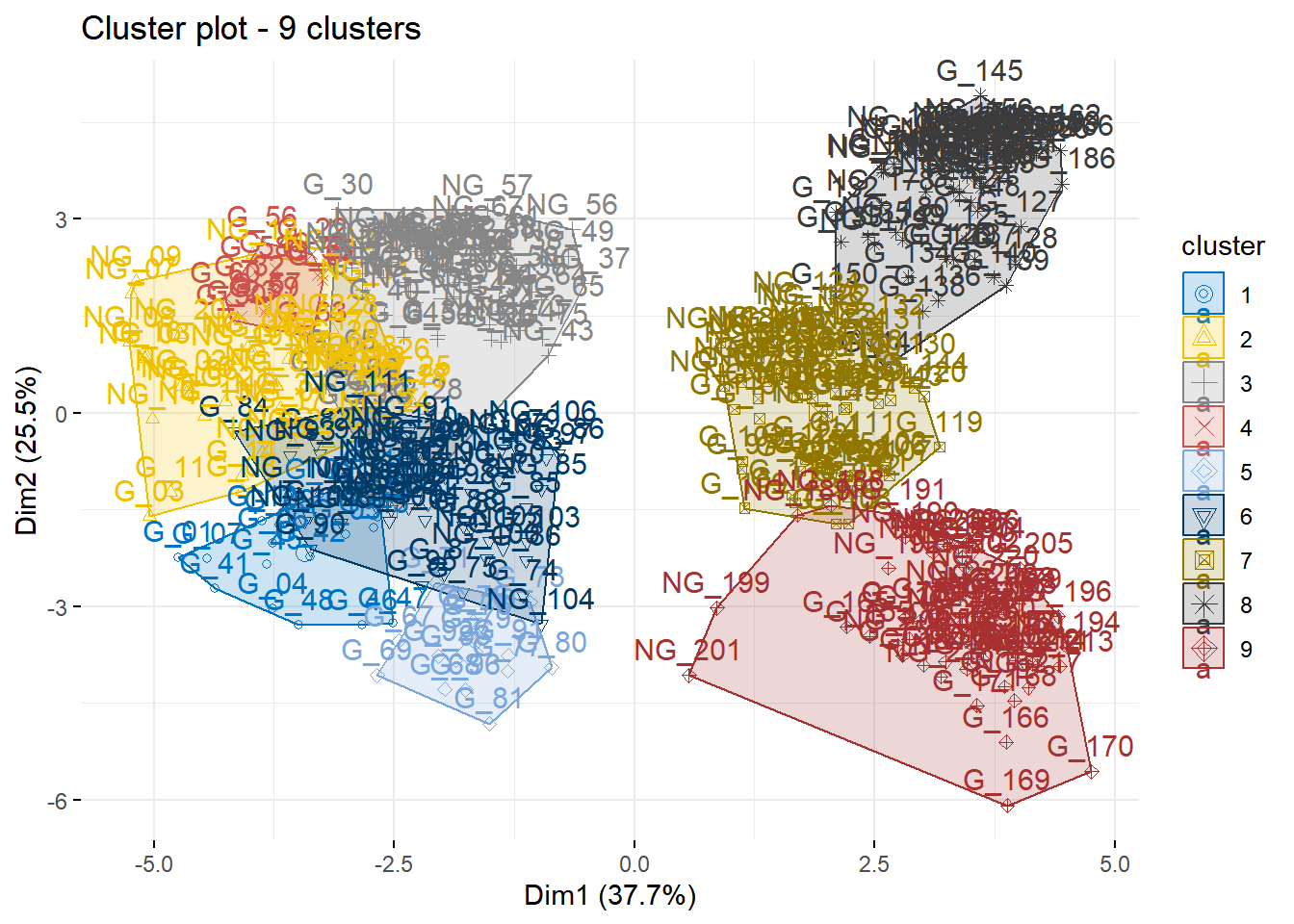 ## --> Number of clusters (method 'Tibs2001SEmax', SE.factor=1): 8